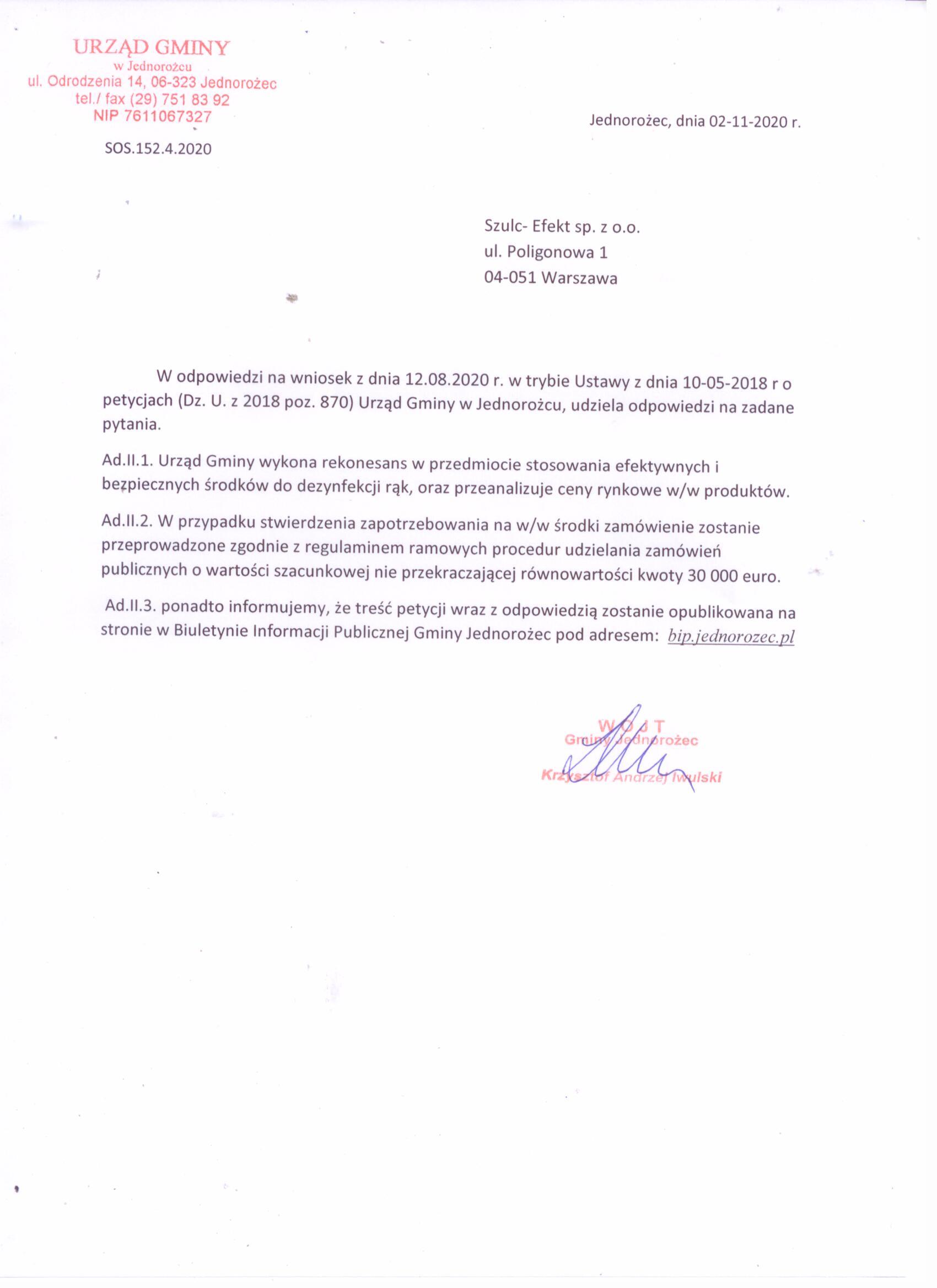 Podmiot publikującyUrząd Gminy w Jednorożcu